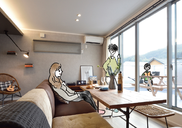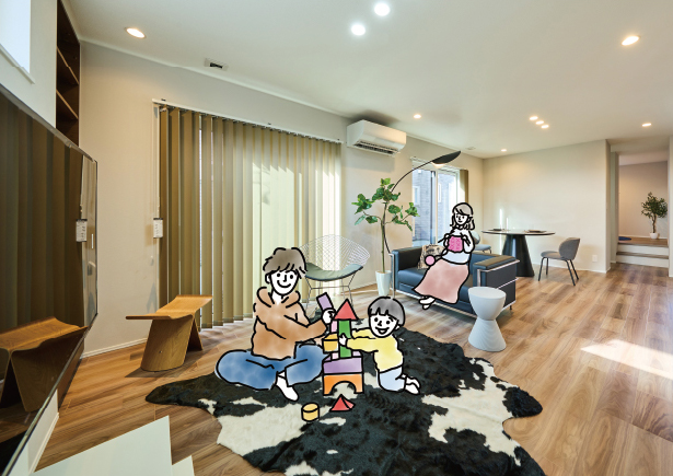 階段の上り下りがなく、部屋とLDKを回遊できる平屋。赤ちゃんと一緒に成長する暮らしを考えたお家は家族やペットにとっても、やさしい家になりました。わが子とペットを見守りながら、にぎやかで楽しい生活を。