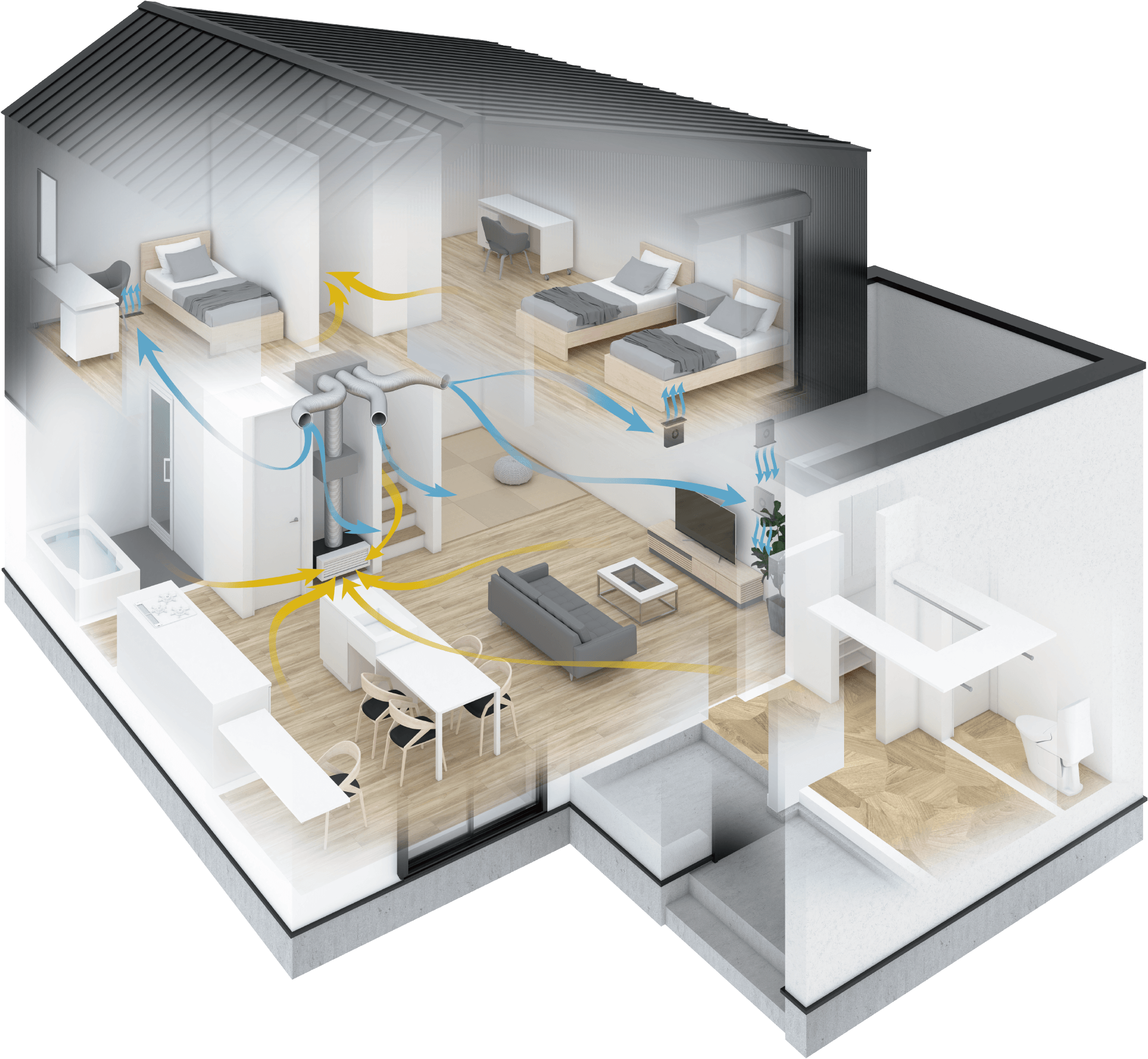 室内の空気を常にきれいな状態に保ち、さらに熱交換換気で温度環境も一定に保ちます。