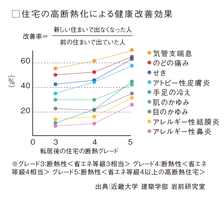 「高断熱の家に住むと」健康改善につながるというデータがあります。