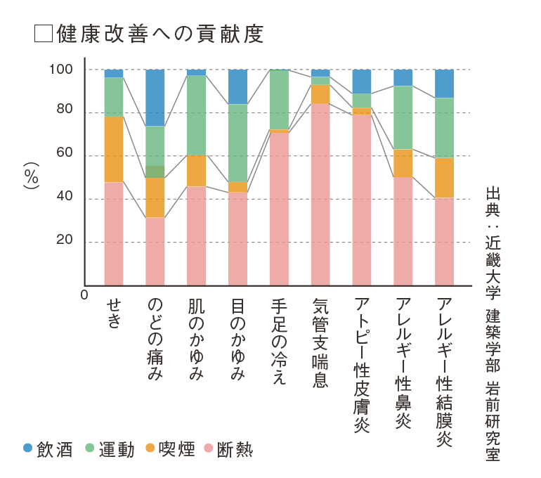 家の断熱は、運動や禁煙より健康改善の貢献度が高いのです。