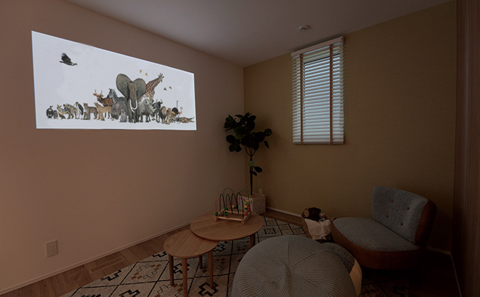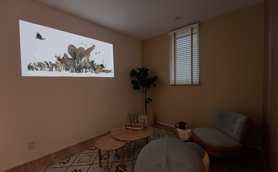 自由な発想でどんな空間にも変化できるフリールーム。例えばプロジェクターを設置すればミニシアタールームとして使用でき、ゆっくりとしたひと時を過ごせます。