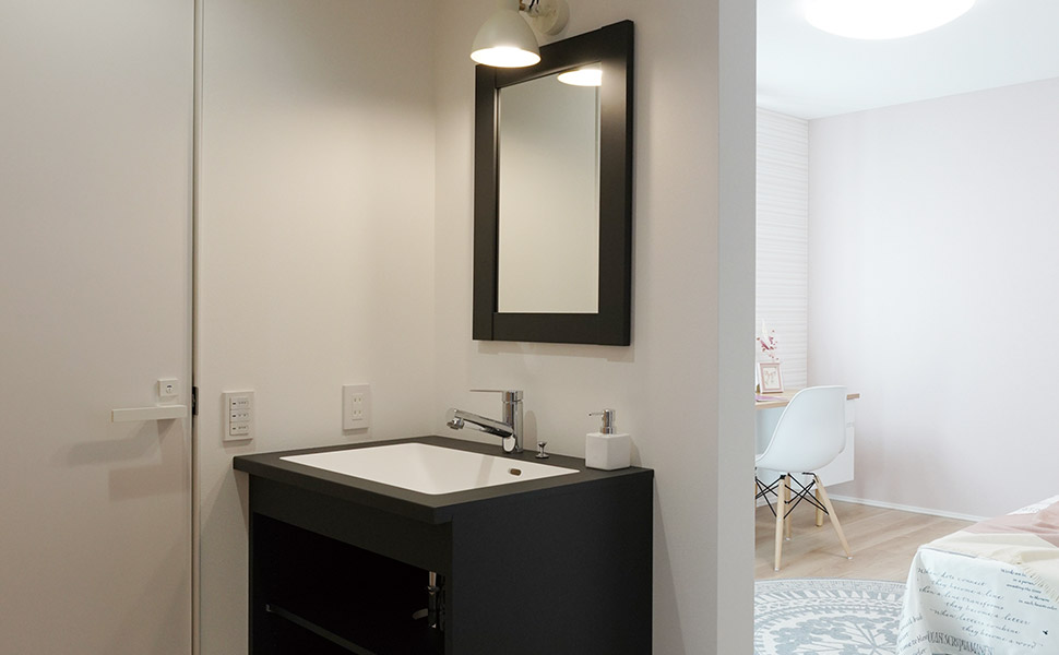 洗面と脱衣所を分けることで、お互いの生活リズムをじゃますることなくストレスフリーに。忙しい朝でもそれぞれがスムーズに身支度できます。