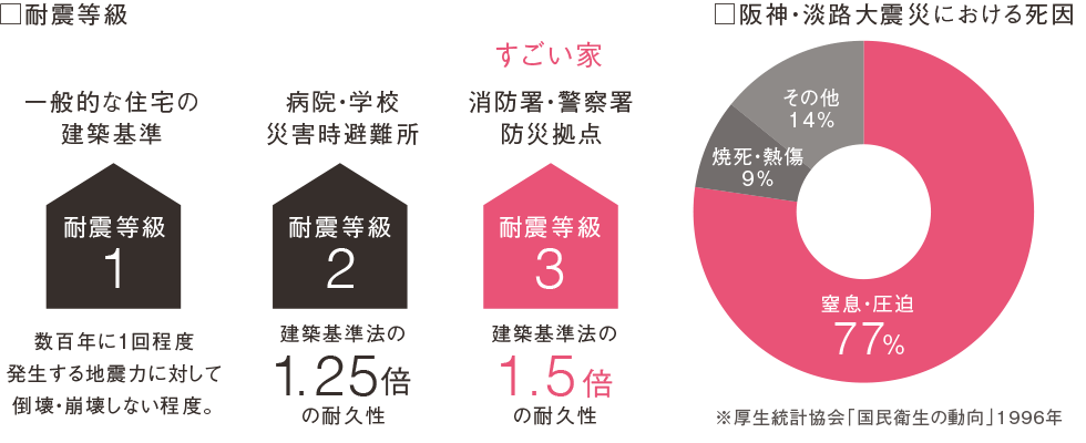 すごい家が基準にしているのは、「耐震等級3」の設計。