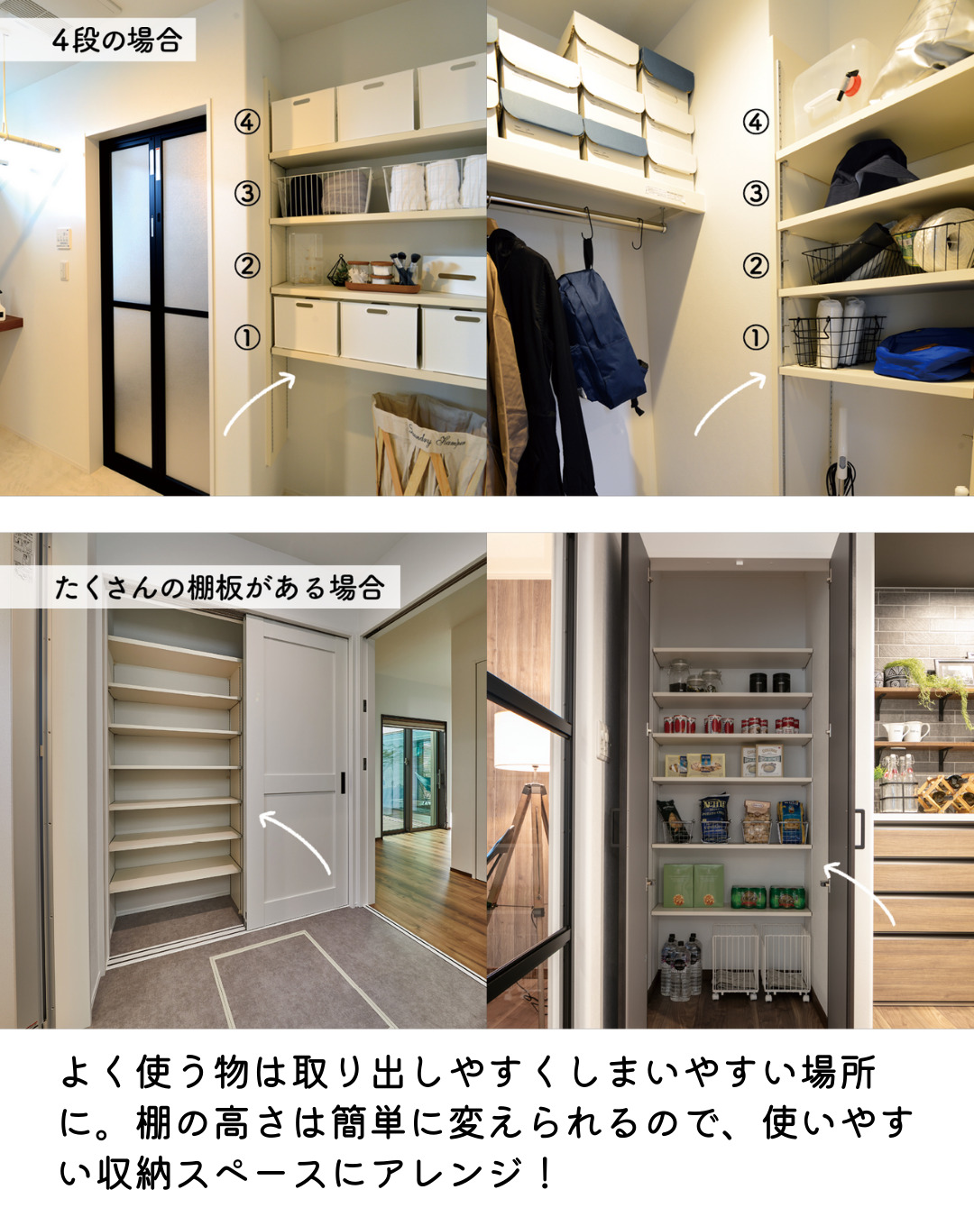 値段を下げるための家づくりのコツ3:届く範囲に必要な段数の収納を