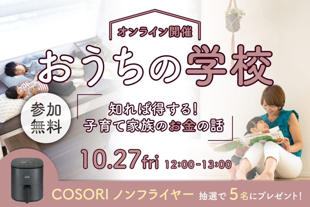 子育てメディア「リトル・ママ」とアイフルホームが、マイホームを検討するご家庭に向けてオンライン講座を開講! 今回は「おうちの学校」知れば得する!子育て家族のお金の話 「子育ての費用ってどれくらいかかる?」「お家ってどれく […]